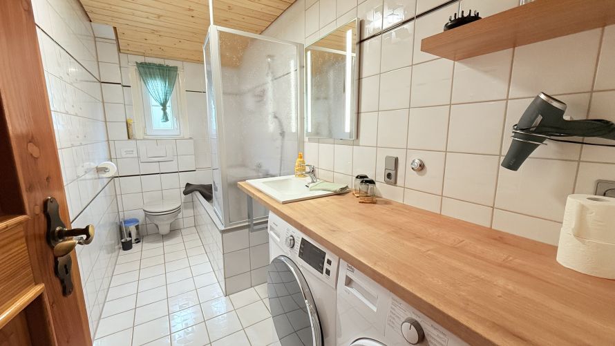 Das Badezimmer mit Badewanne "genießen Sie nach einer Wanderung bei einem Gläschen Sekt ein Vollbad"