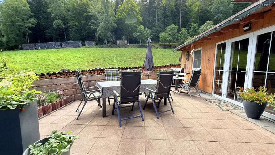 "Beginnen Sie den Tag mit einem Frühstück im Garten bei guter Schwarzwaldluft, Vogelgeztwischer und rauschenden Bach"